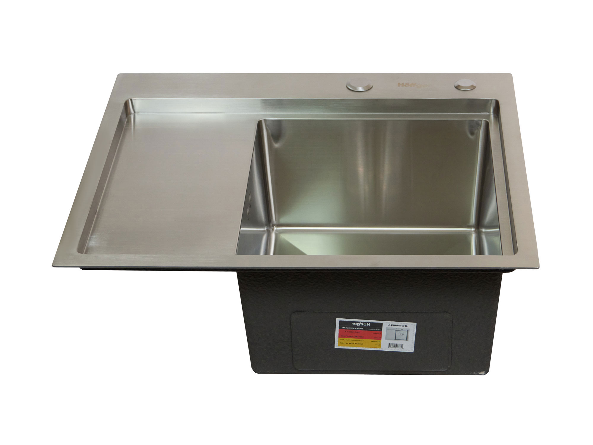 Мойка врезная Hoffger 5848R 580*480*225, толщ 3 мм, сатин, правая чаша, в комплекте сифон